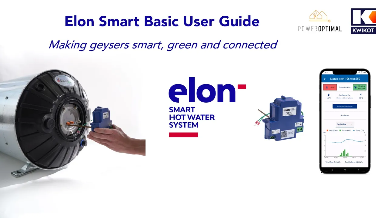 The Elon 100 is a solar-PV water-heater kit. The Smart Water solution is a next-generation smart thermostat platform that turns standard geysers into connected, solar-ready devices.